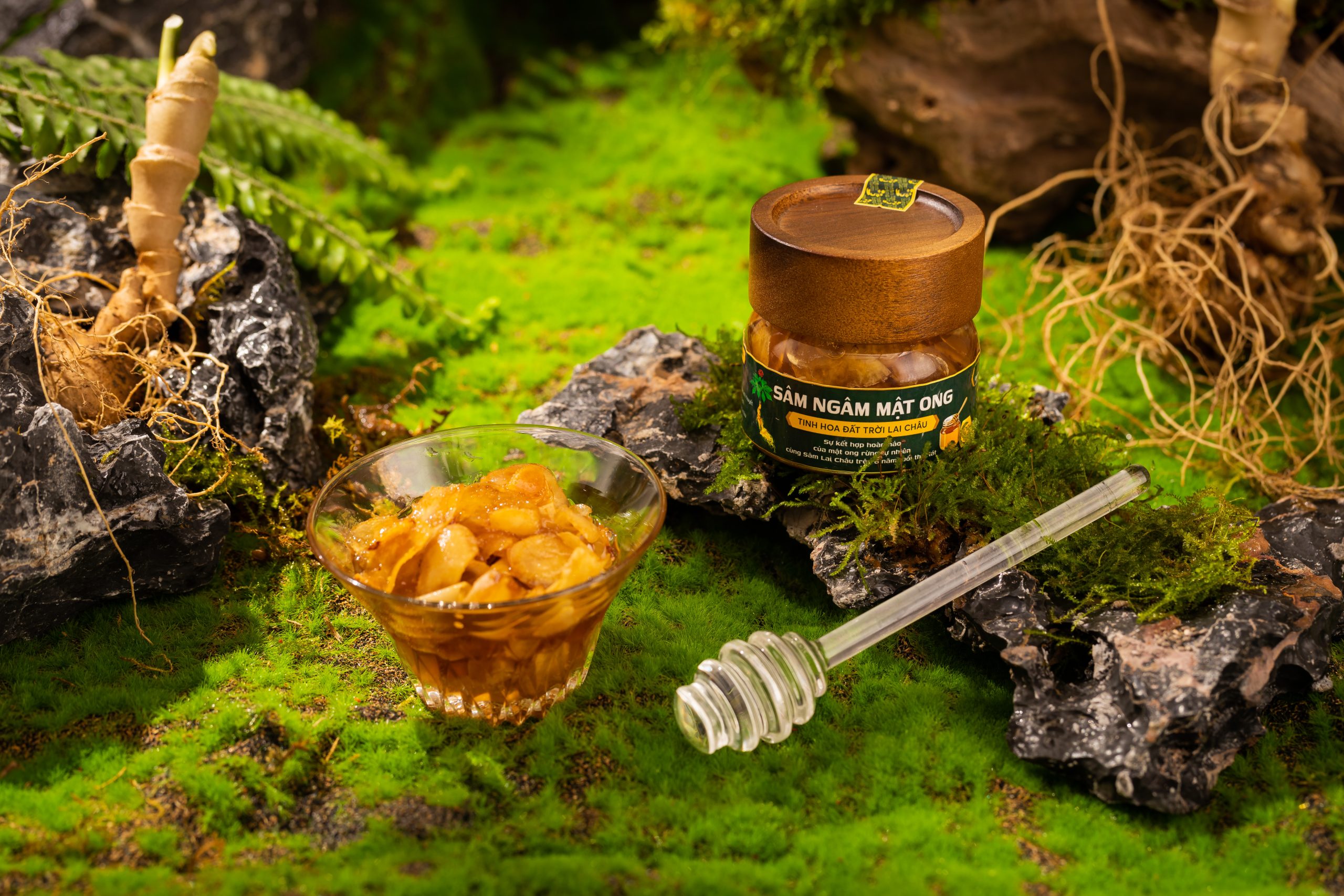 Vò rượu sâm Lai Châu được chế biến từ sâm Lai Châu – một loại sâm núi có giá trị dược liệu cao, nổi tiếng với hàm lượng saponin và các hoạt chất sinh học phong phú. Sâm Lai Châu thường được thu hoạch từ những vùng núi cao, khí hậu lạnh, giúp củ sâm phát triển chậm và tích tụ nhiều dưỡng chất quý giá.